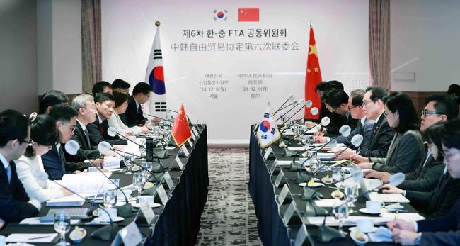 산업통상자원부 안덕근 장관과 중국 상무부 왕셔우원 국제무역협상대표(장관급)는 12월 9일 서울에서 제6차 한중 자유무역협정(FTA) 공동위원회를 개최했다. 이번 회의는 올해 5월 한중 최고위 회담과 11월 한중 정상회담의 후속 조치로 열렸다.