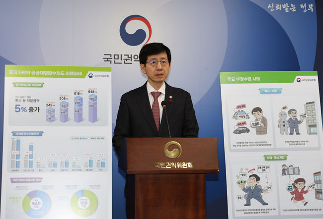 [일간환경연합 장민주 기자] 국민권익위원회는 올해 상반기 공공재정 부정수급에 대한 점검 결과 540억 원의 환수처분과 108억 원의 제재부가금을 부과해 총 648억 원을 회수했다고 밝혔다.