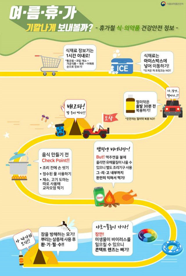 [일간환경연합 신상미 기자]여름휴가 어디로 떠나시나요? 식재료 장보기부터 안전한 물놀이 팁까지, 즐거운 휴가를 보내기 위한 식·의약품 건강 안전 정보를 알려드립니다. 꼭 숙지하시고 떠나세요!