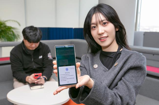 모델이 스미싱 지킴이 서비스를 소개하고 있다.