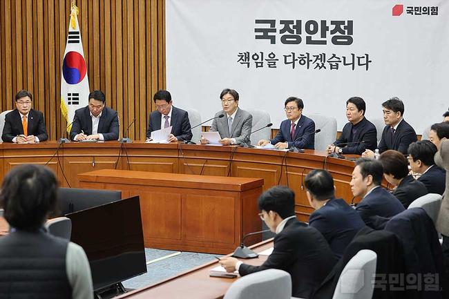 [일간환경연합 신상미 기자] 권성동 국민의힘 원내대표는 19일 원내대책회의에서 이재명 국정파탄 6법에 대해 대통령 재의요구권 행사를 촉구하며, 민주당의 탄핵 남발이 국정 마비를 초래하고 있다고 비판했다.