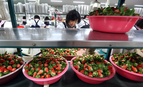 수출용 딸기 선별 포장 작업. (사진=연합뉴스. 제공) |