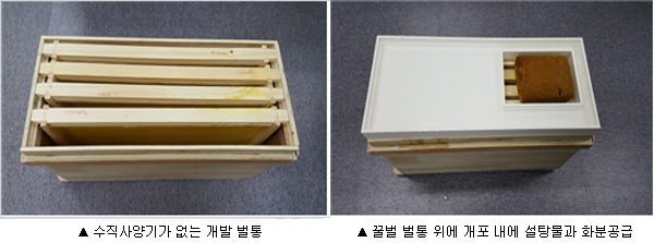 또한 수직 사양기(먹이통)를 사용하는 기존 벌통은 겨울철에 땅의 냉기로 사양수가 차가워져 꿀벌들이 잘 먹지 못했다. 이번에 개발한 벌통은 일체형으로 겨울에도 꿀벌들이 사양수를 쉽게 마실 수 있게 했다.
