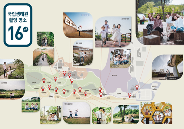 앞서 국립생태원은 올해 봄 여행주간에 방문객을 대상으로 전문 사진작가가 무료로 스냅사진을 촬영해주는 ‘생태여행 사진 상자’ 행사를 진행했고 이를 계기로 이번 촬영 명소 16곳을 선정했다.