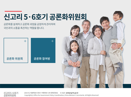 공론화위 홈페이지 메인화면 캡처.홈페이지는 한시적으로 운영되고 주로 공론화와 관련된 소통의 장으로서의 역할을 한다는 점에서 복잡한 메뉴 없이 필요메뉴 중심으로 간명하게 구성됐다는 것이 국조실 공론화지원단의 설명이다.