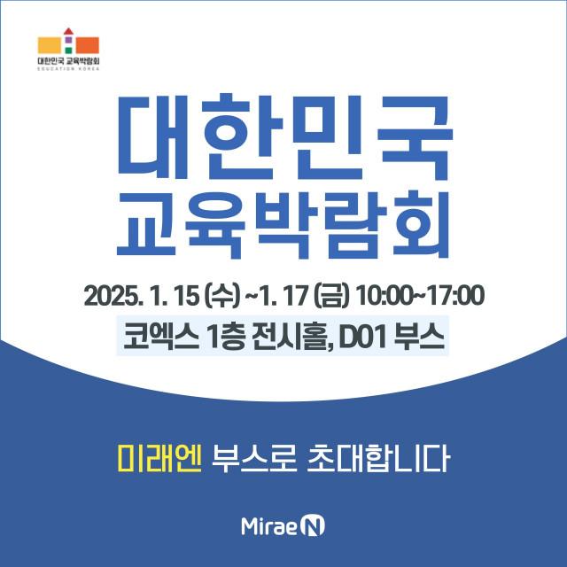 미래엔이 오는 15일부터 17일까지 서울 코엑스에서 열리는 `2025 대한민국 교육박람회`에 참가한다