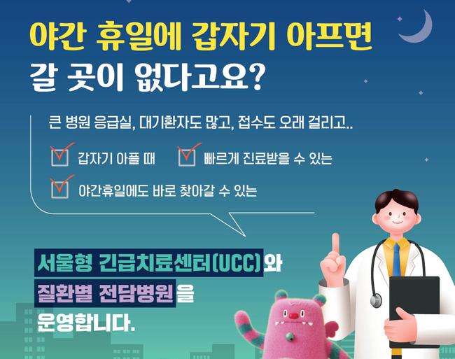 서울형 긴급치료센터(UCC) 2개소와 질환별 전담병원 4개소는 연휴 동안 정상 운영돼 야간 긴급 진료를 지원한다. 소아환자는 ‘우리아이 안심병원’ 8개소와 ‘달빛어린이병원’ 14개소에서 경증 진료를 받을 수 있으며, 중증환자는 ‘우리아이 전문응급센터’ 3개소에서 24시간 진료가 가능하다.