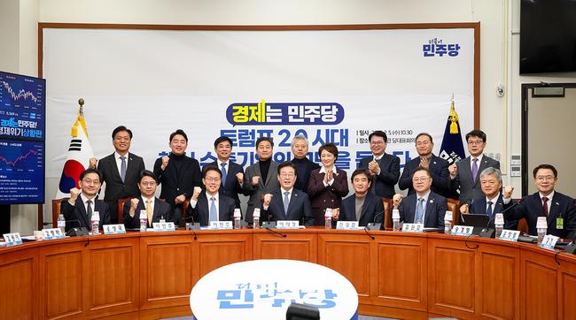 이재명 당대표가 2025.02.05.(수) 국회 본청 당대표회의실에서 열린 종합간담회 `트럼프 2.0시대 핵심 수출기업의 고민을 듣는다`에 참석하여 기념 촬영을 하고 있다.