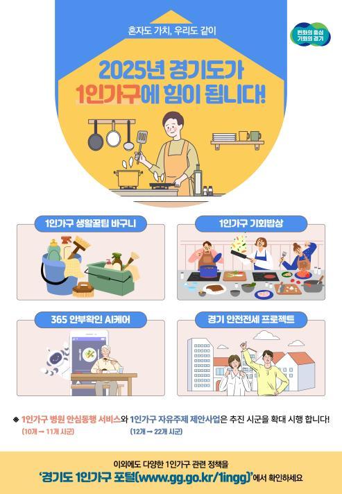 경기도는 도내 171만 1인가구의 삶의 질 향상을 목표로 이 같은 내용의 `2025년 경기도 1인가구 지원 시행계획`을 마련했다고 6일 밝혔다.