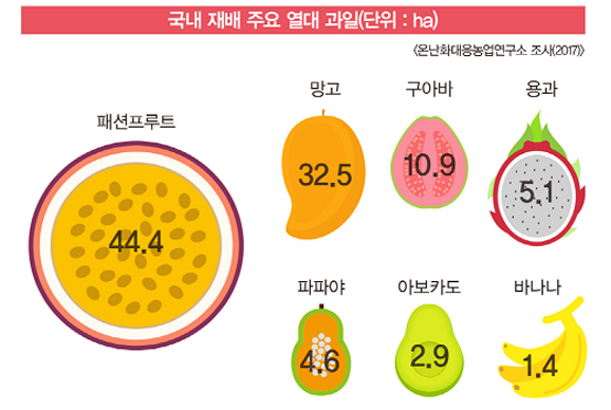 농촌진흥청은 최근 각광받고 있는 아열대작물 연구를 지난 2008년부터 시작해 현재까지 총 50종의 아열대작물을 도입해 우리나라 환경에 맞는 20종을 선발했다.
