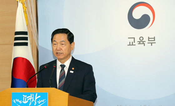 31일 오전 김상곤 부총리 겸 교육부장관이 정부서울청사에서 수능 개편 1년 유예를 발표하고 있다. (사진=연합뉴스 제공) |