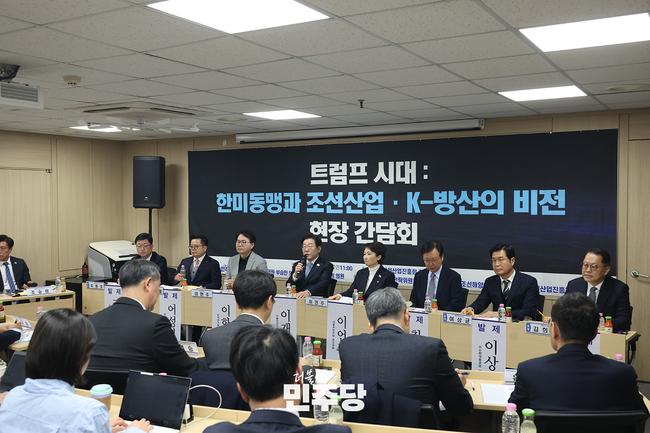 [일간환경연합 신상미 기자] 이재명 더불어민주당 대표는 19일 열린 ‘트럼프 시대: 한미동맹과 조선산업·K-방산의 비전’ 현장 간담회 에서 "미국의 경제·통상 정책 변화 속에서 우리 조선·방위산업이 기회를 찾을 수 있도록 한미 협력을 적극 모색해야 한다"고 강조했다.