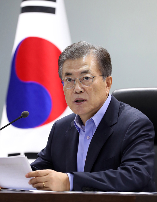 문 대통령은 “북한은 ICBM급 미사일 발사와 핵실험 등 연이은 도발을 통해 한반도 긴장을 고조시킬뿐 아니라 세계 평화를 크게 위협함으로써 국제사회로부터 고립을 더욱 가중시키는 실로 어처구니 없는 전략적 실수를 자행했다”며 “정부는 북한이 핵과 미사일 분야의 기술을 더 이상 고도화해 나가고 있는 것을 결코 용납하지 않을 것”이라고 강조했다.