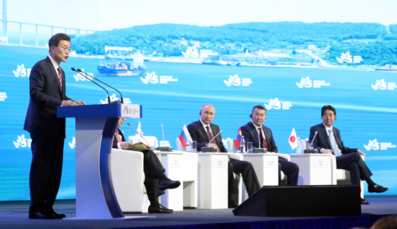 문 대통령은 신 북방정책과 관련, “극동지역 개발을 목표로 하는 푸틴 대통령의 신동방정책과 맞닿아 있다”며 “러시아가 추진하는 극동 개발을 위한 최적의 파트너가 한국이며, 한국이 추진하는 신북방정책도 러시아와의 협력을 전제로 한 것”이라고 설명했다.
