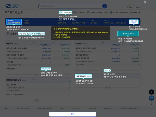 홈택스 전자신고 개선 - 코치마크 도움말 제공