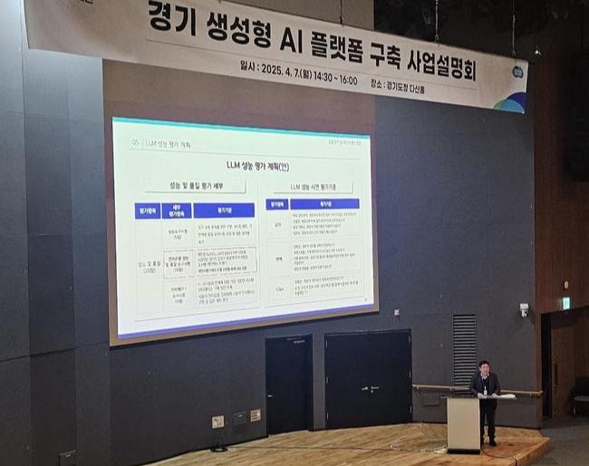[일간환경연합 김경훈 기자] 경기도는 7일 경기도청 다산홀에서 `2025년 경기 생성형 AI 플랫폼 구축` 사업설명회를 열고, 2025년 공공행정 혁신을 위한 생성형 AI 플랫폼 구축 계획을 발표했다.