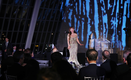 소프라노 조수미가 20일 오후(현지시간) 미국 뉴욕 메트로폴리탄 박물관 새클러윙에서 열린 ‘평화올림픽을 위한 메트로폴리탄 평창의 밤’ 행사에서 공연하고 있다. (사진=연합뉴스 제공)