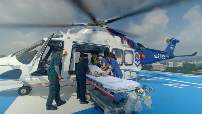 아주대학교병원의 닥터 헬기 모습.