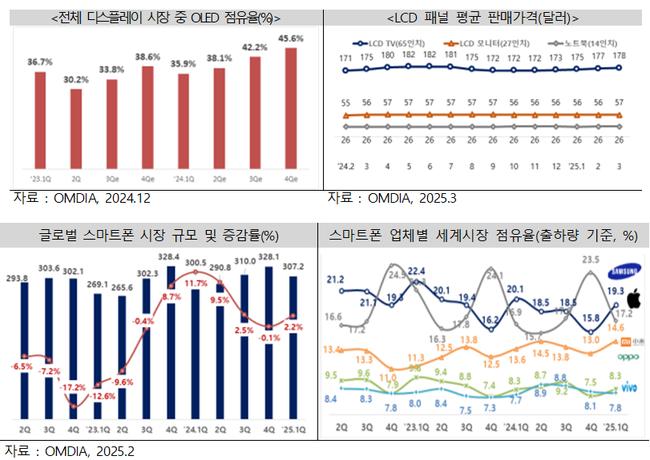 휴대폰은 부분품 수출 확대에 힘입어 10.0억 달러(14.5%↑), 디스플레이는 전방산업 수요 확대와 미국 내 재고 확보 수요로 16.4억 달러(1.3%↑)를 기록했다. 반면, 통신장비는 베트남향 무선장치 공급 감소 등의 영향으로 2.2억 달러(△0.4%)로 소폭 감소했다.