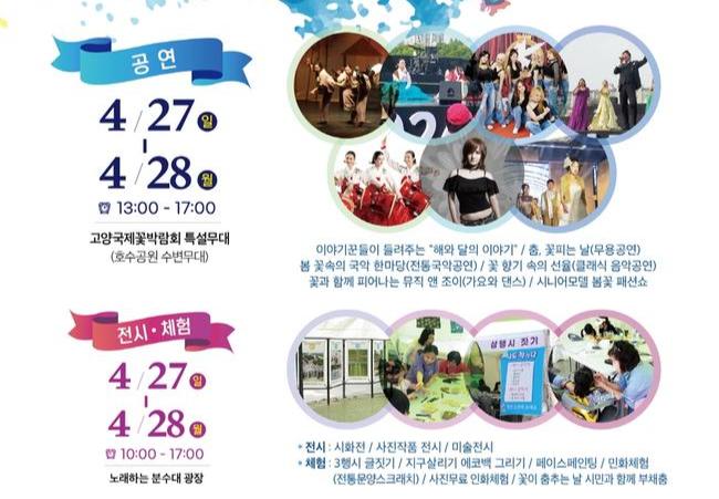 무대공연은 고양국제꽃박람회 입장객을 대상으로 꽃박람회장 내 특설무대(수변무대)에서 진행된다. 27일에는 연극, 국악, 무용, 연예 공연이 28일에는 음악 공연이 펼쳐진다.