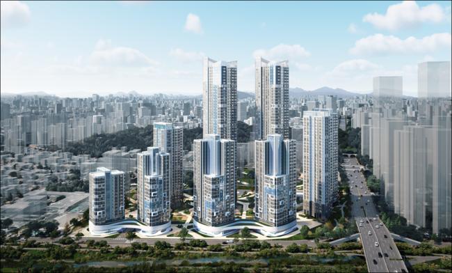 특히 양재천변에 위치한 이점을 살려 기존 랜드마크인 타워팰리스와 조화를 이루는 주동 높이 계획을 통해 리듬감 있는 스카이라인을 구성하고, 주변 단지와의 연속성을 고려한 통경축을 확보한 점이 눈에 띈다. 또한, 구역 동측과 서측에 각각 가로공원과 연결녹지를 배치하여 인근 근린공원 및 양재천으로의 보행 및 녹지 네트워크를 강화했다.