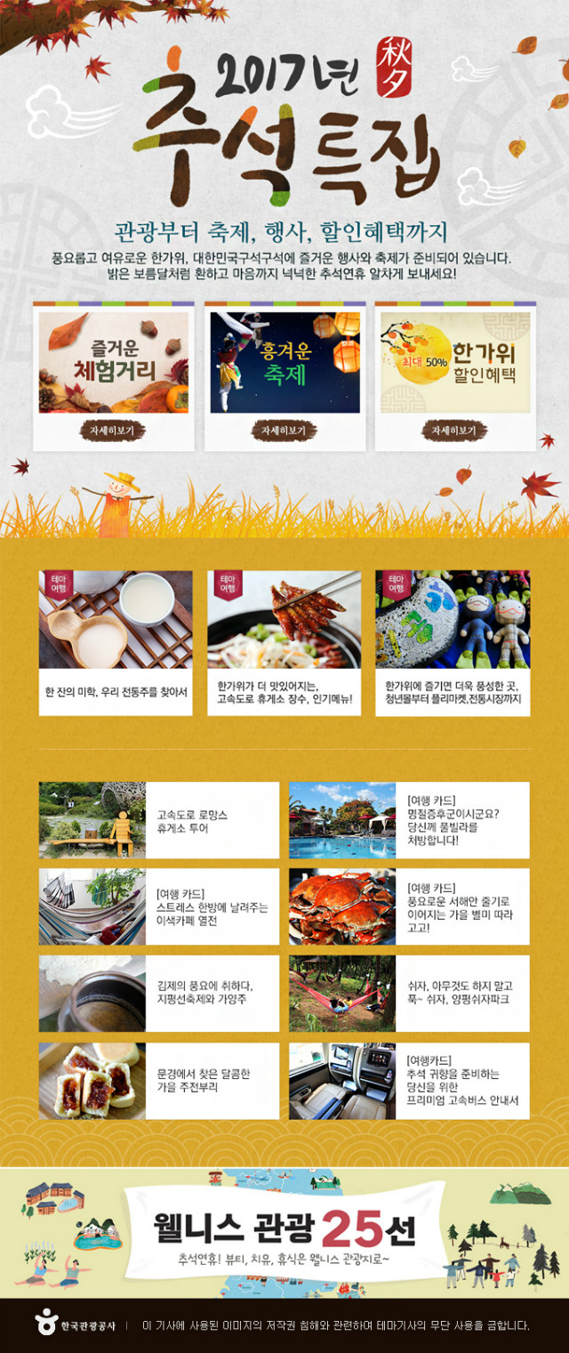 [일간환경연합 장민주 기자]다음은 가족과 함께 즐기는 추석 축제 한마당입니다. 2017년 추석특집 관광부터 축제 행사 활인혜택까지 알차게 즐겨 보세요.