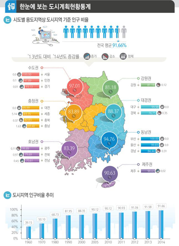 • ‘2014 도시계획현황’…도시거주율 91.66%로 0.08% 증가
