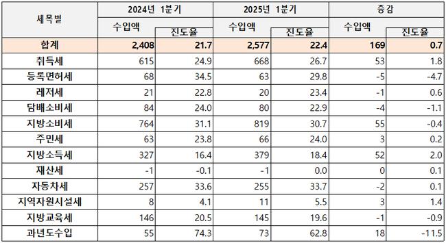 2025년 1분기 지방세 수입 25조 8천억 원…전년 대비 1.7조 증가