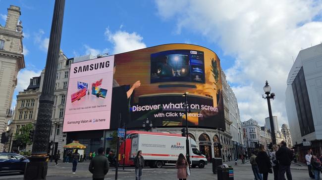 삼성전자가 영국 런던 피카딜리 광장에서 진행하는 `삼성 비전 AI(Vision AI)` 옥외광고 모습