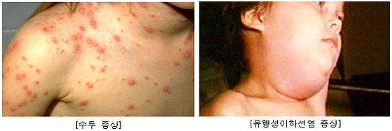 유행성이하선염은 무증상 감염이 20%를 차지하고 증상이 있는 경우 귀밑 이하선(침샘)부위가 붓고 1주일 정도 통증을 동반하며 기침 시 분비되는 비말(침방울)로 전파하는 질환이다.