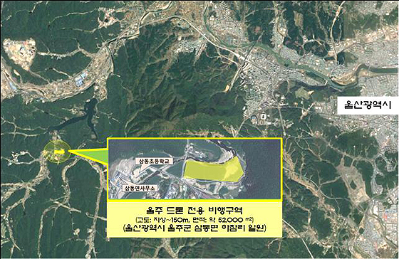 새로 신설되는 드론 전용 비행구역은 울산광역시 울주군 삼동면 하잠리 일원에 위치하고 있다. 고도는 지상으로부터 150m, 면적은 축구장 5개 면적인 약 5만 2000㎡에 달한다.