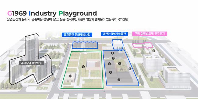 구미산단은 방림 등 섬유산업 유산을 활용해 `GIP1969 Industry Playground`란 비전 아래, 근로자공원, 공연광장, 미디어파사드 등 다양한 문화공간을 조성하고, 매월 축제를 개최해 청년이 살고 싶은 산단으로 꾸민다.