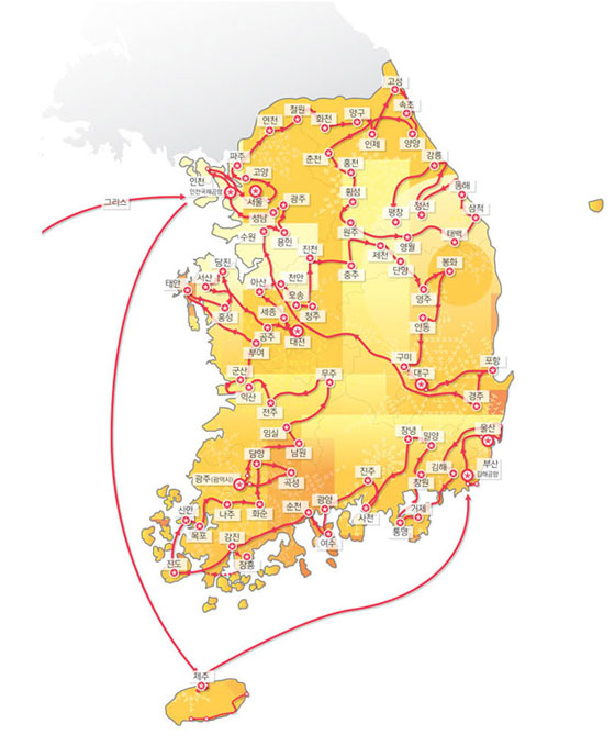 101일간의 성화봉송 경로(17.11.01 ~ 18.02.09) |