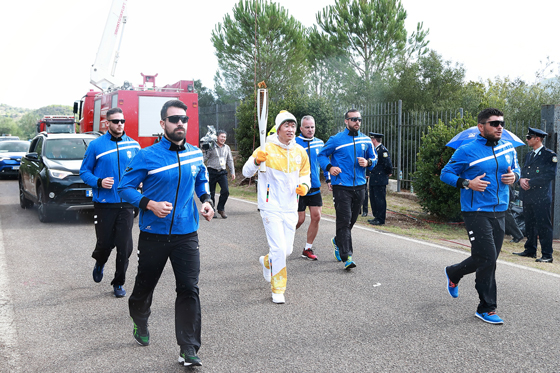그리스 올림피아 헤라신전에서 한국인 첫 성화봉송 주자이자 2018평창동계올림픽 홍보대사인 박지성이 성화를 들고 달리고 있다. (사진 = 2018평창동계올림픽조직위) |