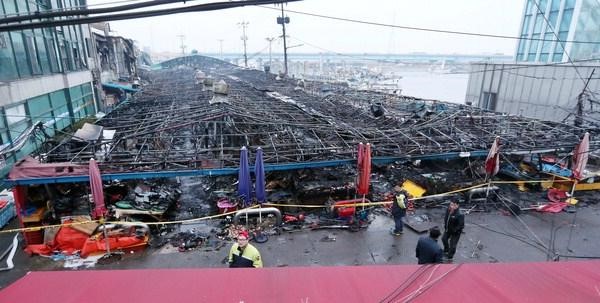 지난 3월 소래포구 어시장 화재 현장. 이 불로 소래포구 어시장 내 점포 330곳 가운데 220곳이 불에 탔다.