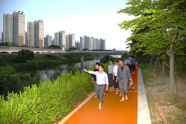 [일간환경연합 김경훈 기자] 남양주시(시장 주광덕)는 10일 진접읍 장현리 일원에 새롭게 조성한 장현공원 내 `왕숙천 테마정원`을 방문해 시민과 함께 맨발 걷기 길을 직접 체험하는 `정책 현장 투어`를 진행했다.