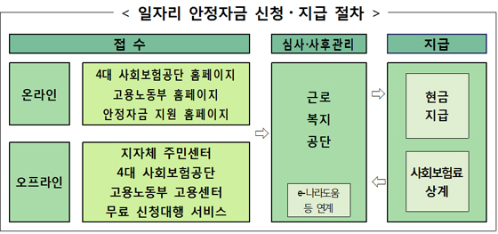신청은 4대 사회보험공단(근로복지공단·건강보험공단·국민연금공단), 고용노동부 고용센터 또는 일자리 안정자금 홈페이지나 방문·우편·팩스 접수도 가능하다.