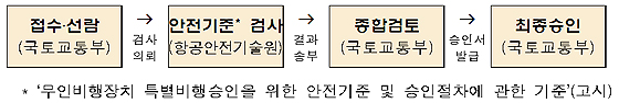 제출된 서류를 바탕으로 항공안전기술원은 기술 검증 등 안전기준 검사를 수행하며 국토부는 안전기준 결과 및 운영 난이도, 주변 환경 등을 종합적으로 고려해 최종 승인한다.