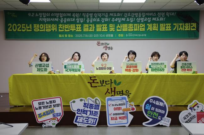 [일간환경연합 신상미 기자] 전국보건의료산업노동조합이 24일부터 총파업에 돌입하겠다고 밝히며 정부에 ‘9.2 노정합의 이행’ 등 7대 요구 수용을 촉구했다. 106개 지부에서 실시된 쟁의행위 찬반투표 결과, 투표율 87.2%, 찬성률 92.06%로 파업이 압도적으로 가결됐다.