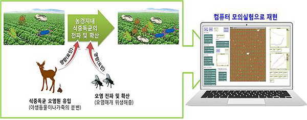 가상의 재배지를 설정한 후 야생동물의 출입 개체 수와 동물 배설 기관 내 식중독균 보균 여부, 분변 배출 빈도, 분변 분해율, 식중독균 매개 위생해충 개체 수 등 조건을 달리하면서 각각의 시나리오에 따른 식중독균 오염과 전파가 어떻게 진행되는지 파악할 수 있다.