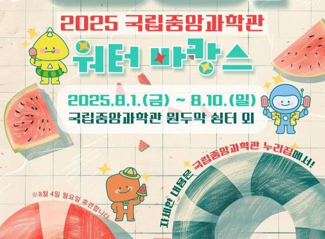 국립중앙과학관(관장 권석민)은 오는 8월 1일(금)부터 10일(일)까지 열흘간 여름 특별행사 ‘과학관에 풍덩!’을 개최한다. 이번 행사는 과학관 전시 관람과 물놀이 체험을 결합한 ‘과캉스(과학관+바캉스)’ 프로그램으로, 가족 단위 관람객이 과학과 여름을 동시에 즐길 수 있도록 기획됐다.