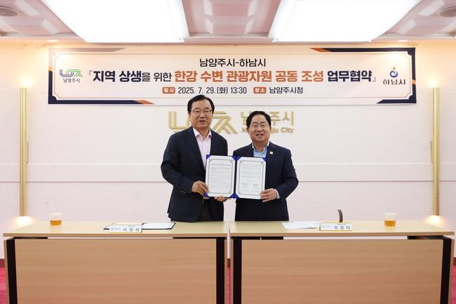 [일간환경연합 김경훈 기자] 남양주시(시장 주광덕)는 29일 남양주시청에서 하남시(시장 이현재)와 `지역 상생을 위한 한강 수변 관광 자원 공동 조성 업무협약`을 체결했다고 밝혔다.