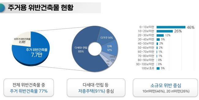 다만 시는 시민 안전을 위협하는 상업시설 위반 건축물이나 다중인파 밀집 지역은 지속해서 점검하고 이행강제금 부과 등 엄정하게 처분할 계획이다. 최진석 서울시 주택실장은 "시민의 주거 안전과 편의를 돕고 경제적 부담을 덜어주기 위해 실생활에 맞춘 제도 개선과 규제를 지속 발굴해 나가겠다"고 말했다.