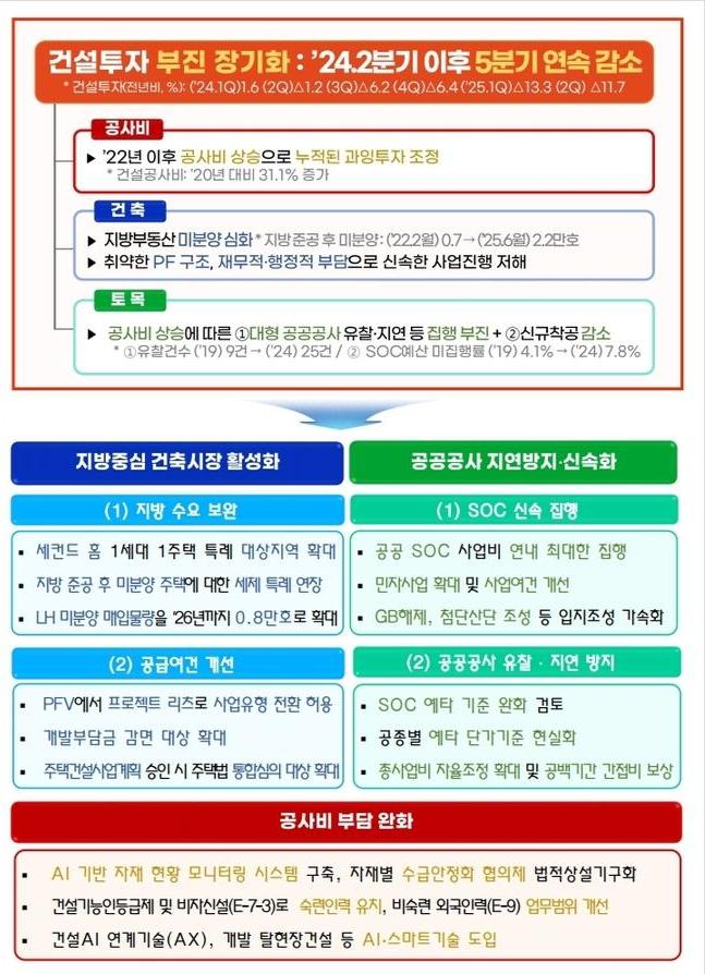 부진한 지방부동산 수요를 보완하는 한편, SOC 조기 확충, 공공공사 제도개선, 공사비 안정화로 건설산업 활력제고