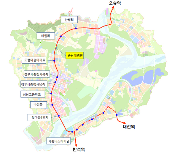 세종 충남대병원 BRT 정류장(가칭)은 병원 개원에 맞춰 운영할 계획이다. 병원 인근 오가낭뜰 근린공원 접근성도 크게 개선될 것으로 행복청은 보고 있다.