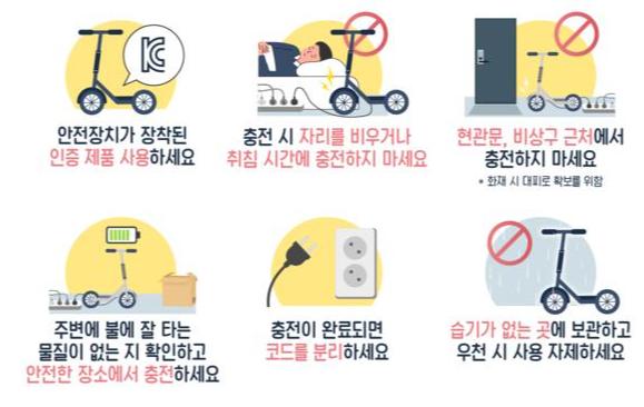[일간환경연합 한선미 기자] 소방청이 최근 아파트 등 주거공간에서 전동킥보드와 전기오토바이 충전 중 발생한 화재사고가 잇따르자 생활 속 리튬이온배터리 화재예방대책을 22일부터 본격 추진한다.