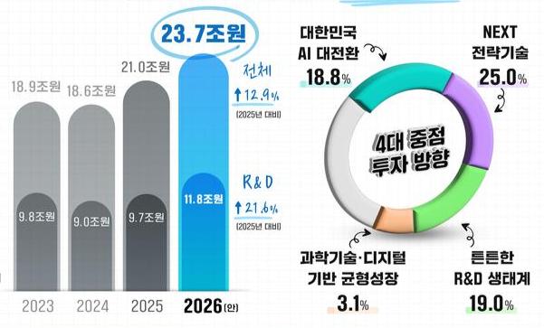[일간환경연합 신상미 기자] 과학기술정보통신부가 2026년도 예산안을 발표하며 인공지능(AI)과 과학기술을 중심으로 한 혁신 성장에 역대 최대 규모인 23조 7000억 원을 투입한다.
