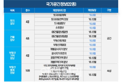[일간환경연합 신상미 기자] 신상미 기자]국토교통부(장관 김현미)는 11월 30일 정부가 보유하고 있는 국가중점 데이터 중 공공과 민간에서 활용성이 높은 부동산 특화 국가공간정보 4종을 개방하였다.