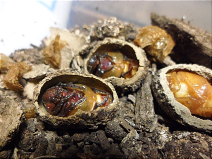 흰점박이꽃무지 유충. 연구진은 흰점박이꽃무지 유충에 치명적인 녹강병균과 백강병균에 대한 항균활성 효과가 우수한 '바실러스 아밀로리퀴에파션스 NBC241' 균주를 낙동강 수계의 토양에서 분리했고, 특허 출원(10-2017-0149776) 및 개발 미생물의 국제특허기탁(KCTC13359BP)을 완료했다.