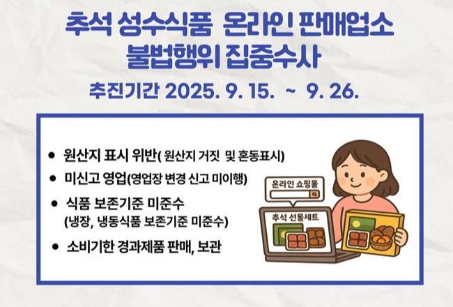 안전한 추석식탁 경기도가 지킵니다...성수식품 온라인 판매 집중 수사